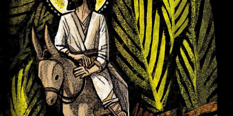 Al acercarse a Betfagé y Betania, junto al monte llamado de los Olivos, mandó a dos discípulos, diciéndoles: «Id a la aldea de enfrente; al entrar en ella, encontraréis un pollino atado, que nadie ha montado nunca. Desatadlo y traedlo.  Y si alguien os pregunta: “¿Por qué lo desatáis?”, le diréis así: “El Señor lo necesita”».