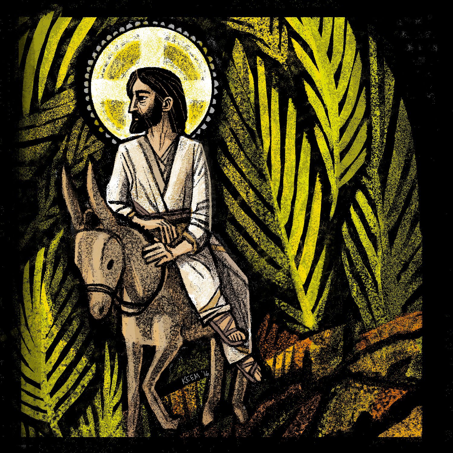 Al acercarse a Betfagé y Betania, junto al monte llamado de los Olivos, mandó a dos discípulos, diciéndoles: «Id a la aldea de enfrente; al entrar en ella, encontraréis un pollino atado, que nadie ha montado nunca. Desatadlo y traedlo.  Y si alguien os pregunta: “¿Por qué lo desatáis?”, le diréis así: “El Señor lo necesita”».